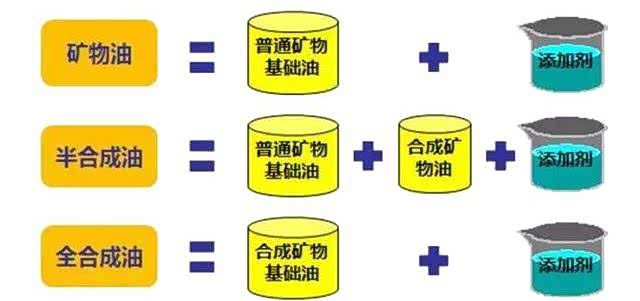 三类机油的主要区别是基础油的差异,矿物机油是原油提炼的润滑油,在高温环境中润滑能力衰减最快;这是等级最差的机油,不过对于绝大多数中小排量自然吸气发动机而言也是足够了。合成机油是利用人工化学合成的方式制造的润滑油,这种油的抗热衰能力是非常强的,即使在工况恶劣的涡轮增压高性能机中也可以轻松用到1万公里。但是合成机油的制造成本过高,且过于强的性能对于一些动力平平的增压动力汽车或中大排量NA自吸动力汽车有些浪费,于是出现了用矿物机油和合成机油基础油调和的半合成;这类机油的性能中规中矩但价格低得多,所以普通代步车可以考虑半合成以5000公里为更换标准。