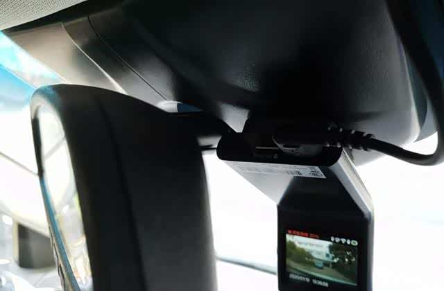360行车记录仪G300安装完成之后就是这个样子的,电源线插入后即可正常工作,同时还将原来的32G卡也插入到了行车记录仪当中。存储卡并不是标准配置,所以如果使用行车记录仪的话,还需要另外购买。