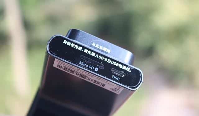 360行车记录仪G300在顶部还设计了一个插入SD卡的卡槽,同时还有连接电源的USB接口,后续要想使360行车记录仪G300正常工作,需要将附赠的电源线接入这个接口当中。