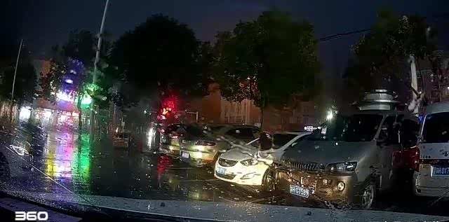 这张视频截图是在夜晚下雨的时候拍摄的,可以看到只要光线照射到的汽车车牌,尽管是在夜间并且是下雨的情况下,360行车记录仪依然可以很清楚的拍摄到正前方的汽车的车牌,在清晰度方面,360行车记录仪的表现还是非常不错的。