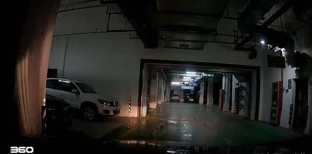 这张视频截图是在地下停车库里拍摄的,360行车记录仪可以有一个触碰拍摄,如果360行车记录仪感应到汽车的开关门,或者车身有震动,就会立刻进行录像。这段录像是我在上车之前打开了副驾驶的门,触发了360行车记录仪的录像动作。