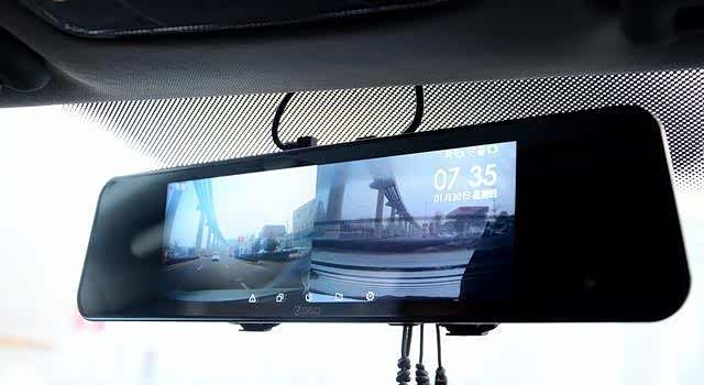 M310行车记录仪开机后,前后双摄同时自动开始录像,轻按最中间的关机/熄屏键关闭屏幕后,即可充当后视镜使用,而录像功能仍在后台保持运行。