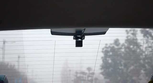 后置摄像头既可以贴在后窗玻璃上,无损式安装,也可以利用支架直接粘贴在牌照灯处。为了简单方便,我选择了前者。