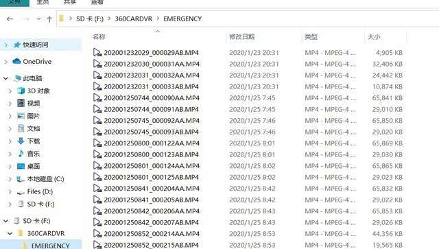 系统会在TF卡根目录下生成一个文件夹,然后包含了EMERGENCY和REC等文件夹,文件下对应有录制的视频和图片,前后摄像头所录制的内容又分别以末位的字母AA和AB进行区分。在视频录制的规格上,默认是以1分钟时间段进行保存,格式为MP4,前路正常生成的视频体积大约就是65M,后路正常生成的视频体积大约就是30M。从前后相邻视频的内容来看,连接上比较连贯。