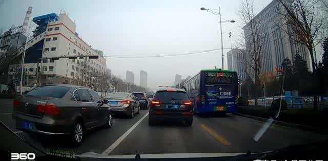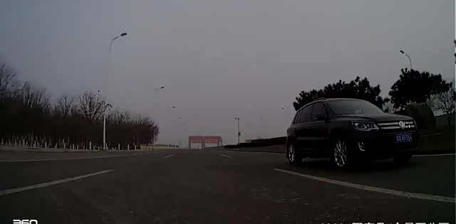 先来看看白天的效果,这是北方特色雾霾下的拍摄效果。前路画面覆盖的区域很广,画面锐利度比较高,色彩还原上偏冷,色彩真实,画面两侧边缘畸变不明显,视频边缘没有严重模糊失真的问题。1米内的其他车牌清晰度很高,容易识别。