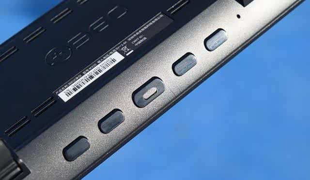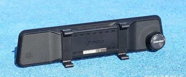 这是360行车记录仪M310背部设计,中央位置有凹陷,避免与后视镜直接接触而影响到散热。左侧下方的开孔就是扬声器的位置,摄像头设计在了右侧,四个挂钩对称分布在左右两侧。360行车记录仪M310中央位置的部分,在上下两侧对称设计有散热孔。
