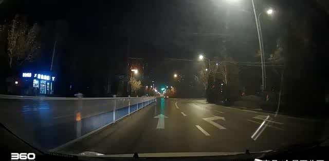 来看看夜间的表现情况,暗光线和夜间才是真正考验行车记录仪的场景。开启车大灯下,前方距离近的车辆车牌容易辨识出来。不过没有对光源的部分进行抑光处理,包括车辆的灯光、路灯、照明灯等,光晕情况比较严重。