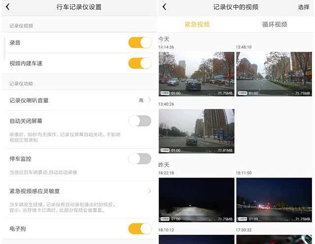 与记录仪相配套的APP使用起来也是很方便的,连接上记录仪之后不仅可以完成视频的回放,还可以对行车记录仪进行设置。