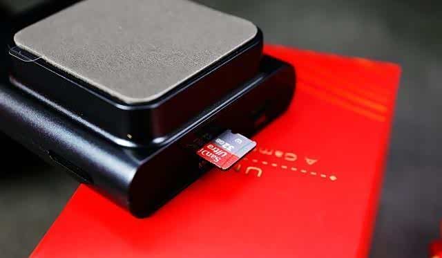 在G300的顶部设计有TF卡槽和电源接口,内存卡方面好像最高支持64GB,C10的卡,所以别买太大了。固定部分采用的是高粘度泡沫胶条粘贴安装。