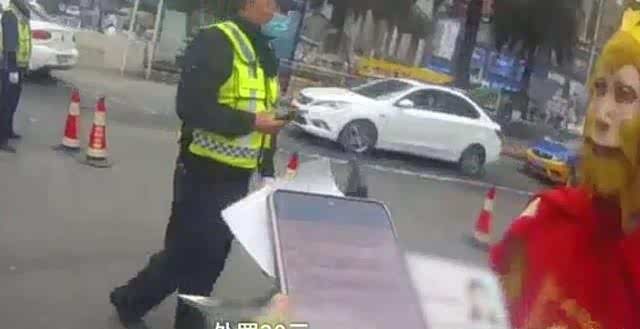 交警还跟“猴哥”打招呼,说这身(孙行者)衣服就很合适了,头盔也戴上了,一样嫩吸引人们的注意力。