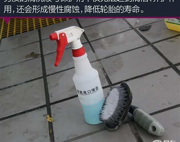 总而言之,用在车上的清洗液都需要我们谨慎对待,劣质的清洗产品会对漆面、轮圈、轮胎形成腐蚀,长期使用还会加速老化,不仅影响车辆的美观,还有可能造成安全隐患。以轮胎保护剂为例,市场价格由几元至上百元不等,商家介绍的功效更是神乎其神,它究竟能否保护轮胎还真不好说,但选用不当的确会腐蚀轮胎橡胶,建议大家适量、适度使用相关产品。