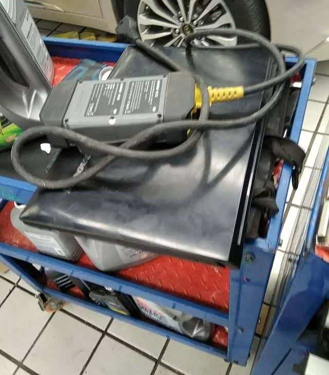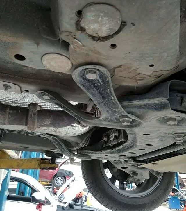 上工位,找支撑升起来,这里特意提醒他要小心,别顶到车子其他地方了,前面在车友会听说有把下面塑料件顶塌边的情况,所以一再叮嘱他,小伙子也很负责的爬下去检查了几次,最终确认了才升起来的,赞一个。
