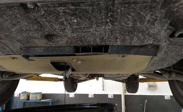 如图,放油的时候,小伙子用一块胶片把护板后端挡住,防止机油快流完的时候滴到护板上,弄脏很难清除。很细心,细致到位。趁放机油的空隙,小伙子去领新机油去了,本人没事就就车底瞎转悠特别趁此机会偷拍,前面小伙子说不能照相,照相他要着罚款,这总不能让人家为难吧,但是为了这帖子,咱悄悄来。