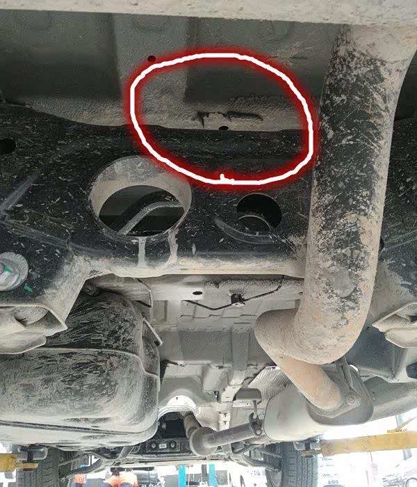 看图,红圈内应该就是原厂喷的地盘装甲哈,对否?特意抠了下,软的,像胶皮一样。