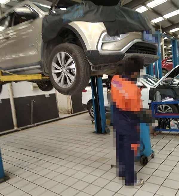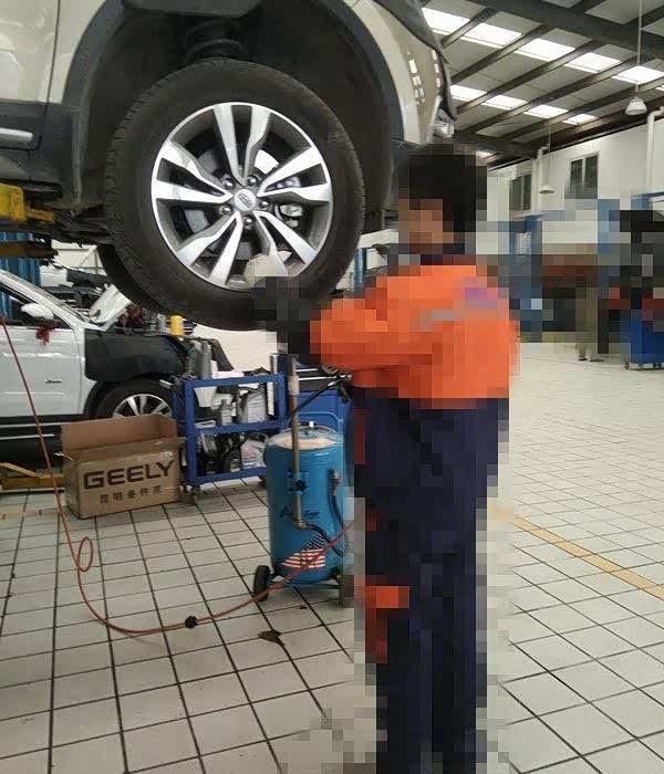 保护好,带好资料和美女去登记资料哦(行驶证,保养手册)登记资料,偷拍美女看图,车身脏,看不清外观太脏,看不到是否有缺陷三张表填完,签字确认,这里客服会推荐个什么机油添加剂,说能保护发动机的磨损,作为干机械的我来说,咱博越没那么娇气,没加(重点是没钱)手续齐全后,美女客服和保养操作人员交接,开车上工位,保养正式开始。