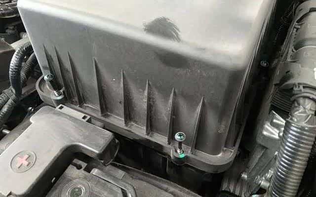 如图,这就是空气滤芯外盒了,四颗长螺钉拧开就OK了,这里吐槽下,这个螺钉太长,要拧多半天才能送开,还有,拧多了不小心螺钉掉下面去就麻烦了,这里要是设计成四个铁片弹簧式卡扣多好,用力一抠就开了,也不怕松开。