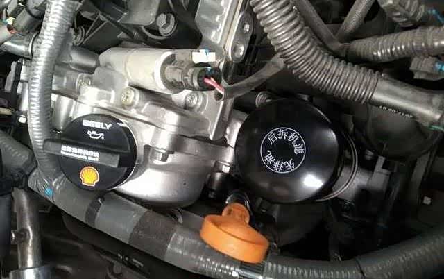咋们博越的机油滤芯是在发动机上边,如下图,引擎盖仓打开后,发动机护板揭开就看得到,就在油尺右边,上面还有操作顺序要求(先排油,后拆机滤),本人车接触得不多,以前赛拉图车的机滤是在下面,就主管以为车子的机滤都应该在底盘下面,因为感觉物理流动循环应该在下面用专用扳手旋转拧下来,和常规螺钉一样,右螺纹的,这个是已经换好的新滤芯。换好滤芯后,就加机油了,上图左边旋钮逆时针拧开,加油,小师傅技术不错,我还特意问他不需要漏斗之类的吗,他直接大瓶机油拧开,斜着一倒,流量从小到大,一点没洒出来,厉害。大瓶倒完后,一边检查油尺一边用小瓶的补充机油量,直到机油达到油尺的上差,好,机油更换完毕,搞定。底盘搞完,接下来又回到轮胎,加固轮胎螺丝,这时关键安全的地方,现在的轮胎都是5颗螺钉,师傅加固的时候遵循对称受力,先加固一颗,跳开第二颗,加固第三颗,接着第四颗,再回到第二颗,最后第五颗,这样受力均匀,能更好的保证轮胎的平衡。师傅挺专业的。