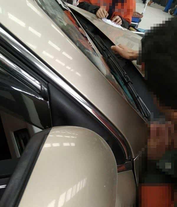 检测完毕后,保养就算完成保养完成,小师傅在填单,前面这个师傅在帮我调雨刮的喷水,我感觉喷水太低,所以请师傅调高点,调了后效果不错。