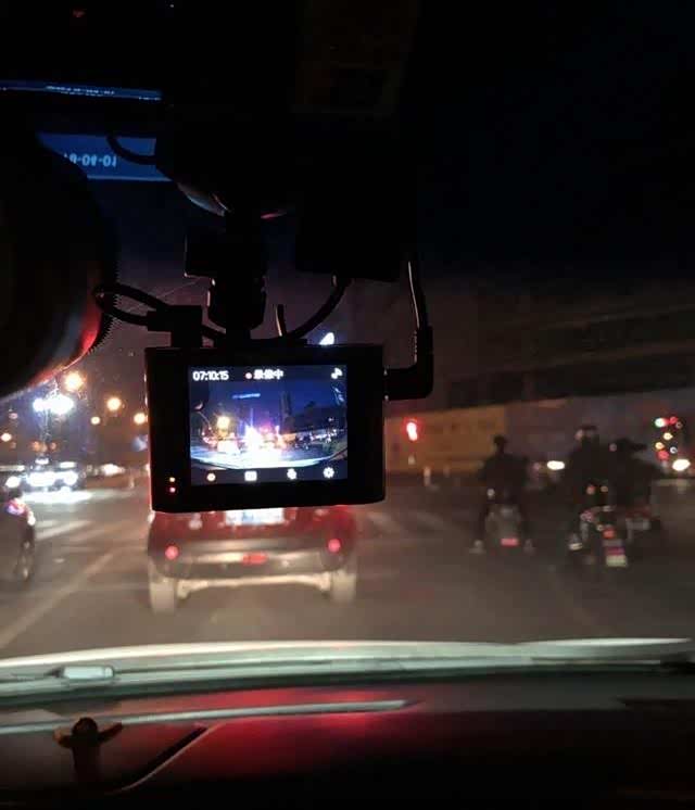 这张是车辆行驶中拍摄的,依然选择了夜里常见的行车工况,有路灯及动态前后车辆灯光干扰,摄像效果还是令人满意的,除部分交汇光照稍有亮点,其他画面很清晰,其实人眼直接看这些交汇光照也是大的亮点,所以这个时候还是减缓车速最为保险!这里还要同步呼应一下之前提到的数据线隐藏在车内介绍,这个就是完全安装后的效果,完全看不到下垂的数据线,数据线从接头往上沿车边缘内部隐藏安装了!另外之前提到的电子狗、辅助驾驶等功能也有体验,照片是无从显示效果了,但是实际效果是有的,至于问效果如何,我只能说他是辅助功能,不是主业哦,具有实用性!这个是行车记录仪,在记录功能上是非常专业的!