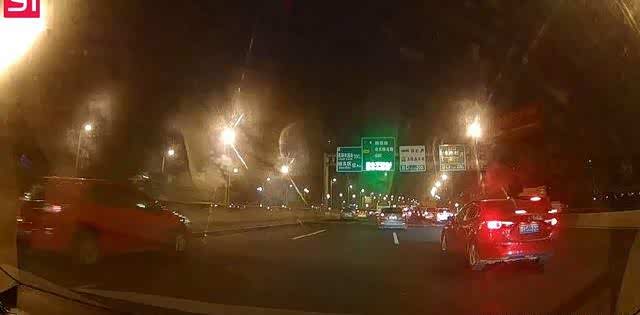 大饼特意挑选了一段夜间的录像,当时天色已经全黑,记录仪对于路面指示牌和前车车牌均能比较清晰的记录下来。