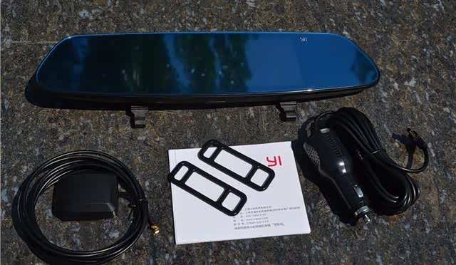 打开包装,包装内包括有小蚁智能后视镜领航版主体一部、车载充电器、GPS天线、绑带以及使用说明书,值得一提的是,车载充电器除了供电以外,其内置了FM天线发射模块,因此,使用其他供电设备为小蚁后视镜供电是不支持FM发射的,这点要注意。