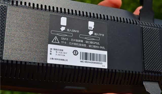 另外小蚁后视镜支持TF拓展内存,最大可支持64G内存卡,建议卡速CLASS 10以上,使用效果更佳,SIM卡为小蚁专供的联通SIM卡,支持3G频段,接口位于小蚁后视镜顶部,在背部还贴有SIM卡、TF卡正确安装的图示教程。