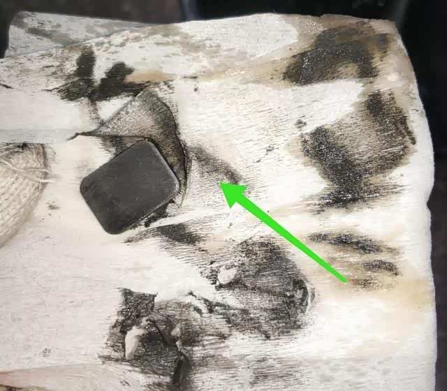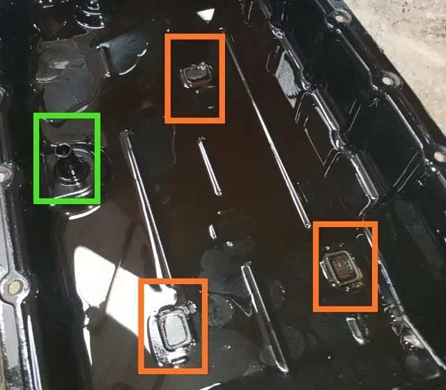 这些位于油底壳上面的吸铁石还是有一定的作用,如下图绿色区域所示,这些黑色的杂质就是在吸铁石上面吸附,需要清洗干净。