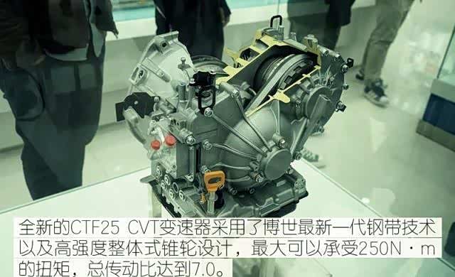 从技术参数上看,万里扬CVT18的优势并不明显,其额定输入扭矩仅为180牛米,而主减速比在5.7-6.07之间,只能说是中规中矩,而在与远景X3那一枚1.5L自然吸气发动机的匹配方面和传动效率方面的表现,我们还没有找到相关的官方资料,不过从小熊油耗上百公里综合8.67L的实际表现和论坛中网友的描述来看,匹配了CVT变速箱后的远景X3在性能方面可以说是没有明显的提升,这一点有不少关注远景X3的网友表示不能接受,甚至有网友说哪怕给远景X3换上DCT变速箱,有顿挫都忍了,但油耗问题不解决始终觉得不爽。而另一方面,作为对手的宝骏510车上配备的CVT变速箱就来路不小了,一期投入了30亿巨资由博世(BOSCH)荷兰变速箱公司与上汽联合研发打造,这也是上汽集团在变速箱方面的重要战略布局。而宝骏510新增的这款CVT无级变速器代号为CTF25,额定输出扭矩为250牛米,在性能方面就显得非常卓越,可以在2.08-14.5的超宽速比范围内实现无级变速,而其传动效率也达到了非常给力的88.6%,在大幅提升动力平顺性的同时,维持了优异的油耗表现。
