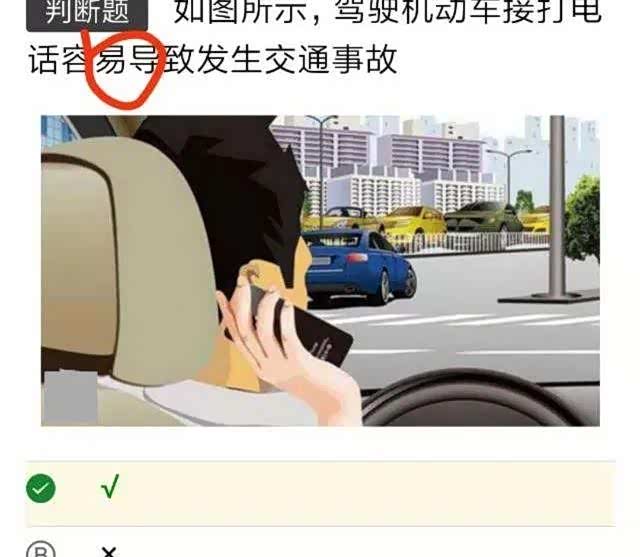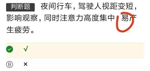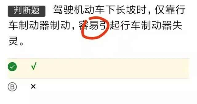 2、见到“易”字打√请看下面驾照考试科目一的真题。
