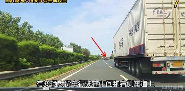你看看前方的大货车就知道我为什么在左车道行驶了。大货车速度没有小型客车快,但是像这种大货车双车并驾齐驱的行驶方式的路段,小型客车也只能有两种选择,一是老老实实跟行在大货车后面靠右行驶,然后不断地被超车,并且不断地面临着被前后大货车夹击的风险;另一种就是被动的长期占用左侧车道行驶,不断地去超大货车。