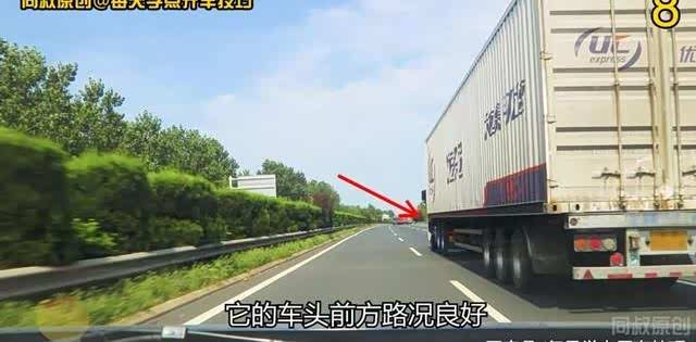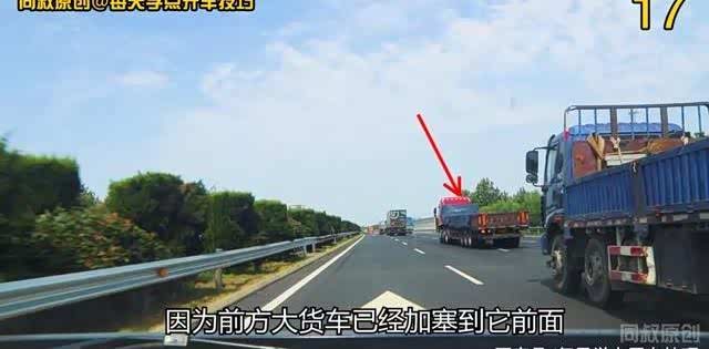 因为前方大货车已经加塞到它前面,也许它可能准备向右变道了。