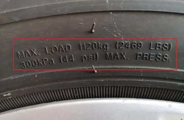 7、轮胎极限气压和极限载重量标示