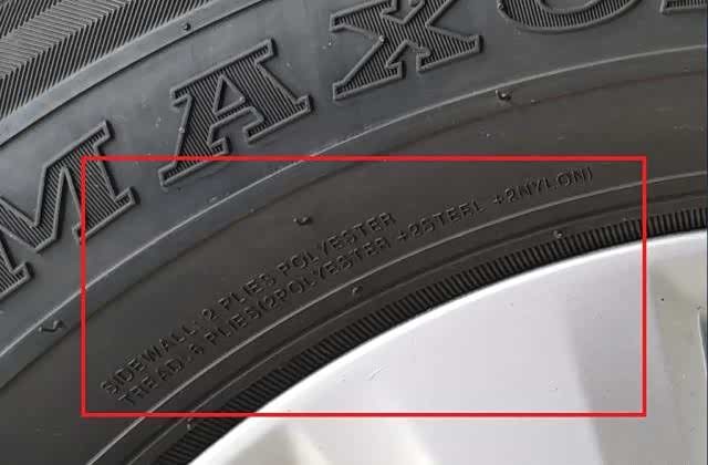 轮胎是由不同的材料结合而成,但会将轮胎的内部结构构成标示出来,就跟生产食品的厂家一样,会标示出产品成分。厂家一般以TREAD(胎冠)和SIDEWALL(胎侧)来分别标示。详见示例: