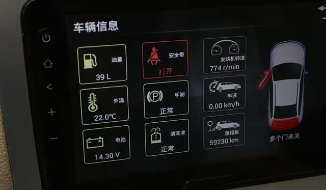 发动机启动后,我们就可以把70迈汽车应急启动电源电瓶夹子拿下来了,这时候由发电机为电瓶充电,通过车载电脑看到,发动机充电状态是14.3V。