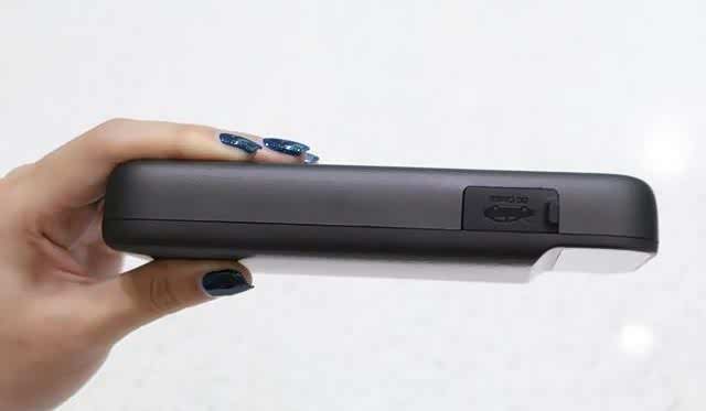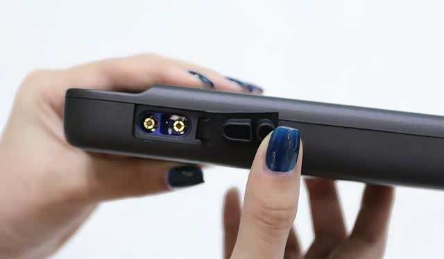 侧面的汽车启动端口平时被橡胶盖子盖住,这里是12V电压输出端口,因为输出电流较大,因此需要用盖子盖住,以免细小螺丝、钥匙等金属物触碰到这个触点引发其他事故。为了保护内置电池,还有一个温度探针,如果探测到电芯温度达到60摄氏度时,立刻切断输出,保护内部电芯。