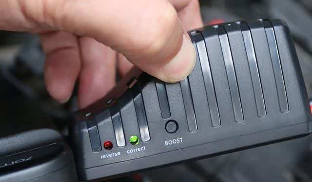 最重要的环节来了,我们要拿它去启动亏电的汽车了,这个汽车电瓶已经使用了3年多了,偶尔会出现第一次打火不成功的现象,我们先把汽车电瓶过放电:在不启动发动机的情况下开大灯,使电瓶耗电,然后利用70迈汽车应急启动电源应急启动发动机,把适配器插到主机上,夹子夹到电瓶桩头上,如果极性不对的话适配器红色指示灯常亮,嗡鸣器长鸣报警;如果机型对但电瓶严重亏电,则绿灯亮,嗡鸣器短鸣三声报警。这时候可以按下“BOOST”键后,就可以去启动发动机了。