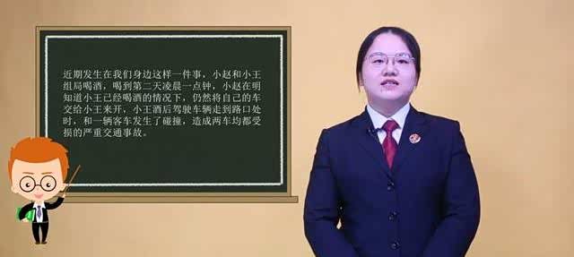 近期发生在我们身边这样一件事,小赵和小王组局喝酒,喝到第二天凌晨一点钟,小赵在明知道小王已经喝酒的情况下,仍然将自己的车交给小王来开,小王酒后驾驶车辆走到路口处时,和一辆客车发生了碰撞,造成两车均都受损的严重交通事故。