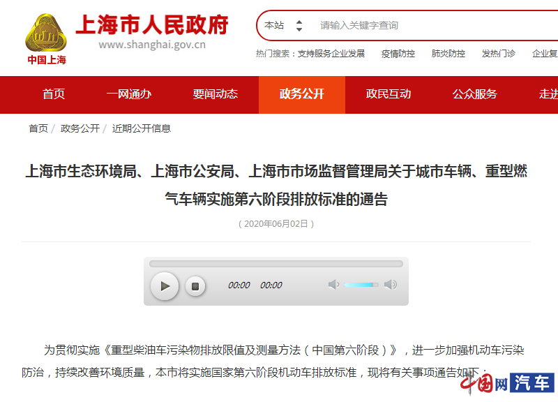 从上海市人民政府网站获悉,为了贯彻实施《重型柴油车污染物排放限值及测量方法(中国第六阶段)》,进一步加强机动车污染防治,持续改善环境质量,上海市将实施国家第六阶段机动车排放标准。并于昨日发布了《上海市生态环境局、上海市公安局、上海市市场监督管理局关于城市车辆、重型燃气车辆实施第六阶段排放标准的通告》。