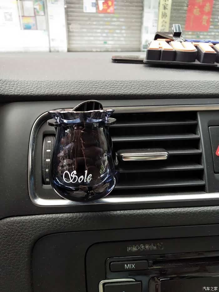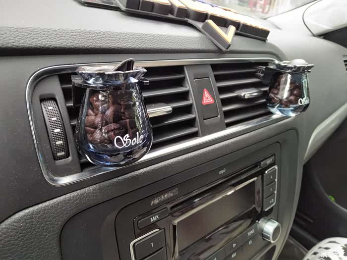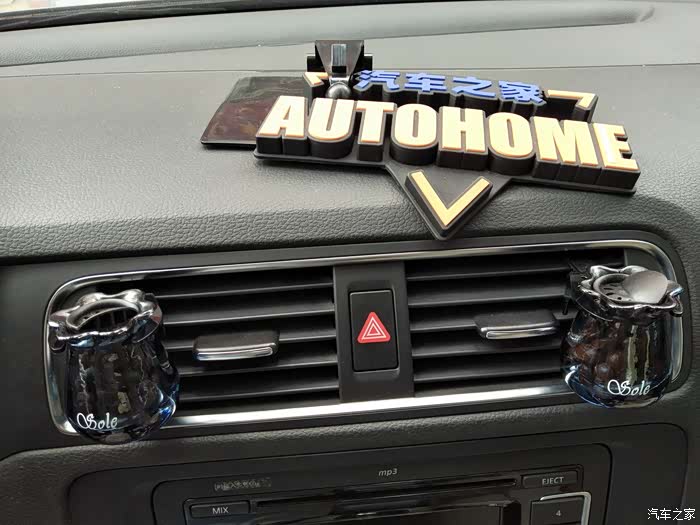 两个小饰件完成,给车内增加了一点点活泼气息。有香味,比不上其它原车自带的香氛系统,但也增加了点观赏性。
