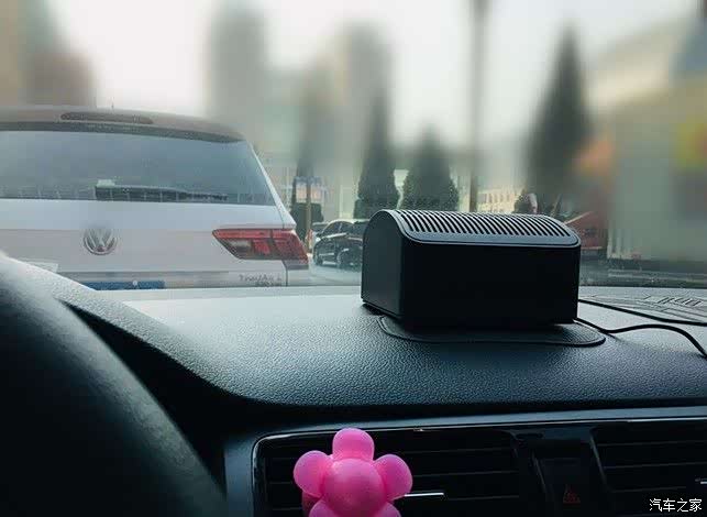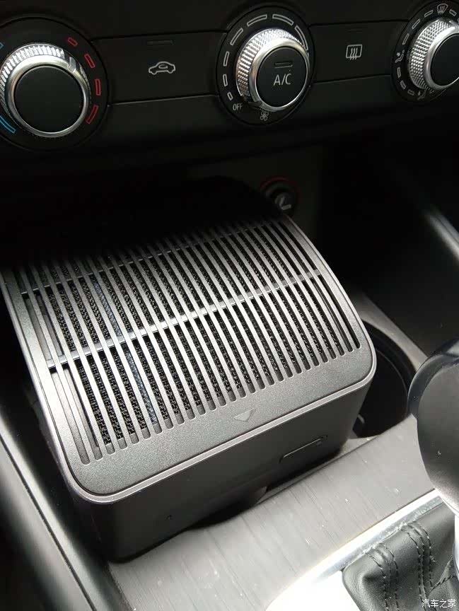 放那里的好处是绝对不影响视线,离点烟器又近,不会拖着长长的线了。不好的地方就是占了我放茶杯、饮料瓶的地方了。还有就是由于出风口在净化器的背部,这样就挡着出风口了。在没找到更好的地方去暂且先摆那吧。