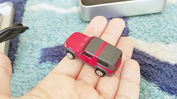 这款车载U盘容量为8G,给我留下了很深刻的印象,因为作为一名“铁杆车迷”来讲?,这款以北京BJ40越野车为原型而制作的车型U盘,亮点颇多。例如它的外壳采用了金属材质,整体的质感特别好,而且喷漆工艺也不错,颜色方面也还原了实车的做工,虽然车门等部分都无法打开,但目测这个比例也要很小了,还是可以理解的。另外这款车载U盘的打开开关在后备箱处,往外推开后就可以看到U盘的芯片,平时放里面存点歌曲,传到车上还是一个非常不错的选择。另外,这款车载U盘还采用了精美铁盒包装,里面有黑色泡沫进行填充,这点厂家真的是诚意满满。但这款U盘也有它的缺点,例如8G存储对于现在的科技进步来说,的确小了一些,存储的东西也不是很多,另外UI盘芯片的打开方式不是很舒服,有些别扭,每次打开都要费半天时间。接下来就与大家分享这款车载U盘。