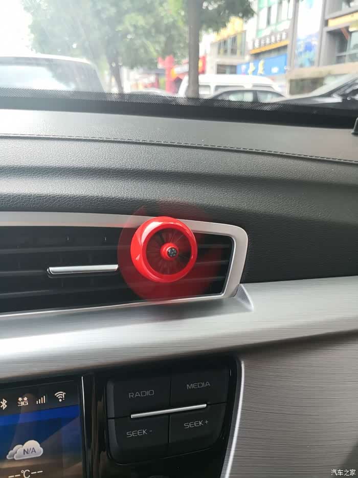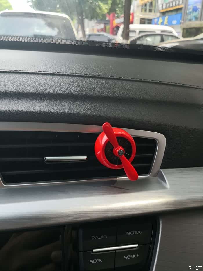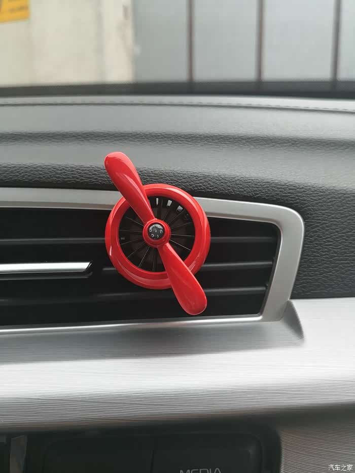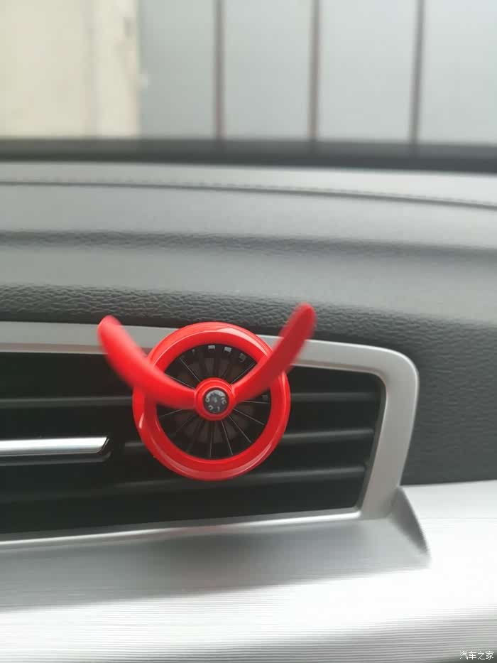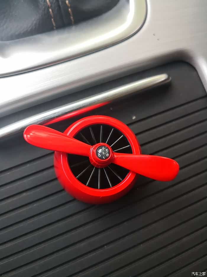 前段时间入手了的汽车周边产品——空军二号车载香水(香蕉味),借此机会跟大家分享一下此产品。提到车载香水.,脑海中浮现的第一印象就是一张防滑垫加一瓶香水,摆在爱车中控台上中间。所以当马爸爸家里出现的这款卡住的车载香水装饰又一次吸引了我的眼球.再加上去年购买过该产品的上一代。当时作为礼物送给发小,.深受好评,所以毫不犹豫立马下单购买了再次自己体验一次。一打开包装 产品很规整的摆放在上面,已经可以淡淡得闻到香蕉味.,盒子的下面还有产品说明书以及心形贴纸。二号设计结构虽然很简单,由旋转叶片跟车载支架两部分以及外加香料片一盒组成。但是设计的核心在旋转叶片的中心,听说放在空调出风口处叶片就能转动起来。装上去转动后,全程动力海洋的味道清爽扑鼻。香料的味道很淡,挺不错。与前一代的挂式香水对比(挂在后视镜下面的那种),作用各有所长。这个更显质感,也更有趣。一直转动着也给枯噪的旅途增加了乐趣。