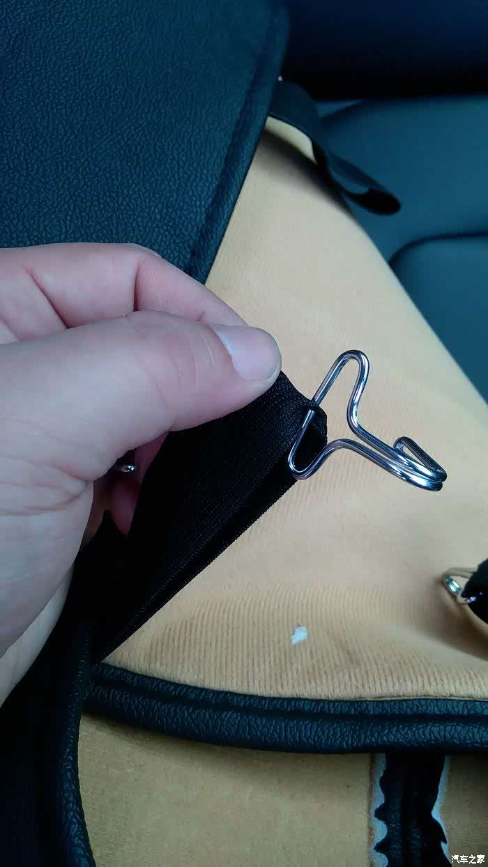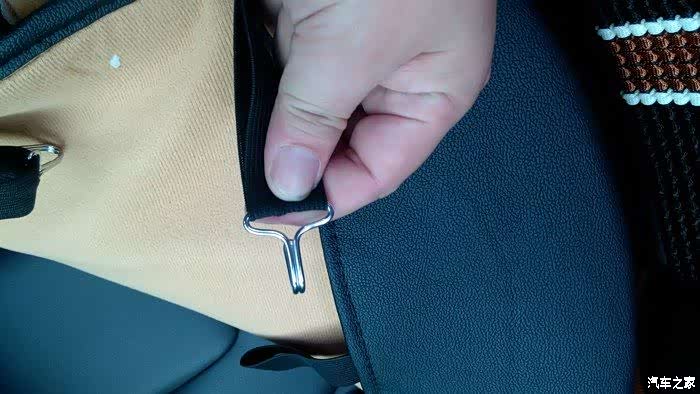 二排的座套用的是魔术贴固定在靠背后和靠背接缝,下面同样是钩子钩在座椅下方金属管上。