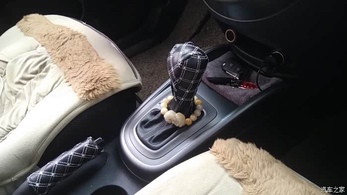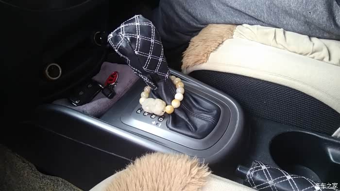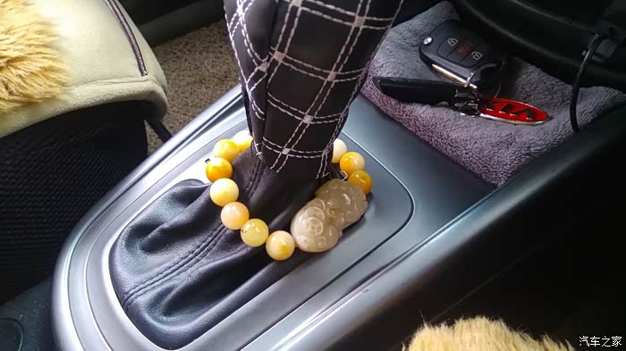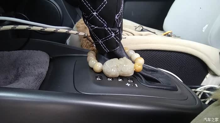祈福手串在车上的摆放位置,因为是自动档车型,所以并不碍事