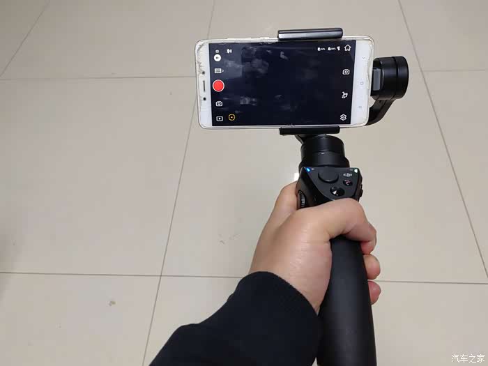 一代稳定器我印象中除了黑色款还有白色的,我当然要黑色的,耐脏。包装盒子很大,打开后还有一个包装,里面是主机,电池,手提袋以及主机挂线和充电线。手机下载大疆软件,手机自带的软件商城就有APP,注册,需要提供手机号,登录。打开手机蓝牙,页面选到稳定器,打开稳定器,当然你手机得先固定到稳定器上,稳定器有个夹子,反正我这6,5寸大屏都能用夹住。重点是要调整配重,要不然,手机拍出来的视频是歪的。我目前还是调整的一般般。连接后,手机切换到拍摄界面,仔细看说明书,把按键都了解了。手机右上角会显示稳定器和手机的点亮,冬天的话,电池续航会短,所以要及时充电。充电会有指示灯闪亮,常绿则充满。