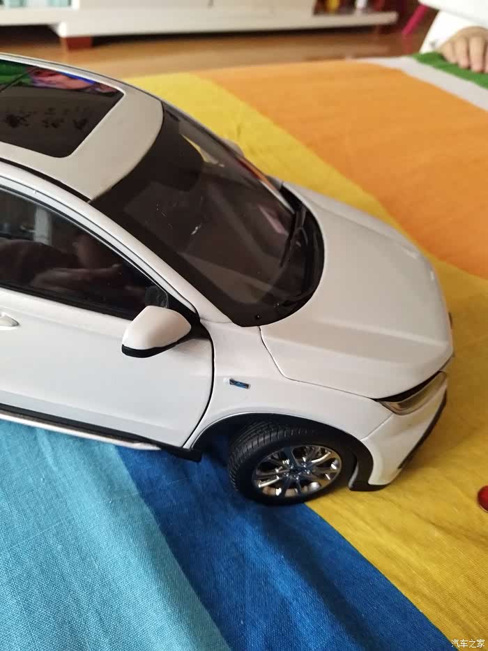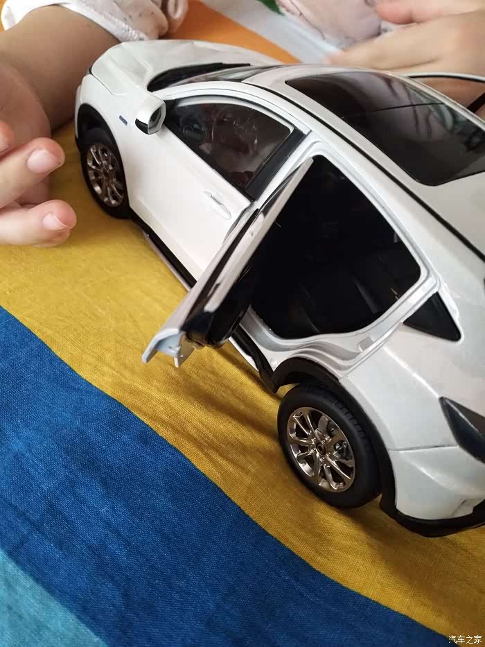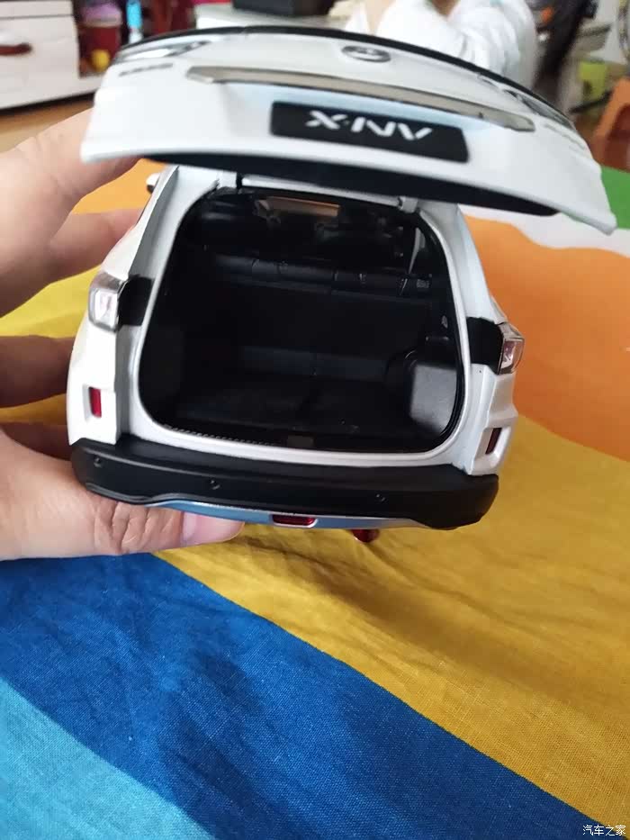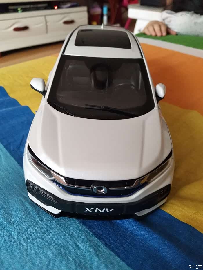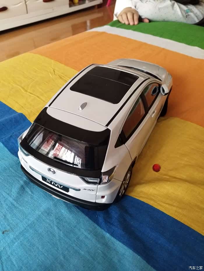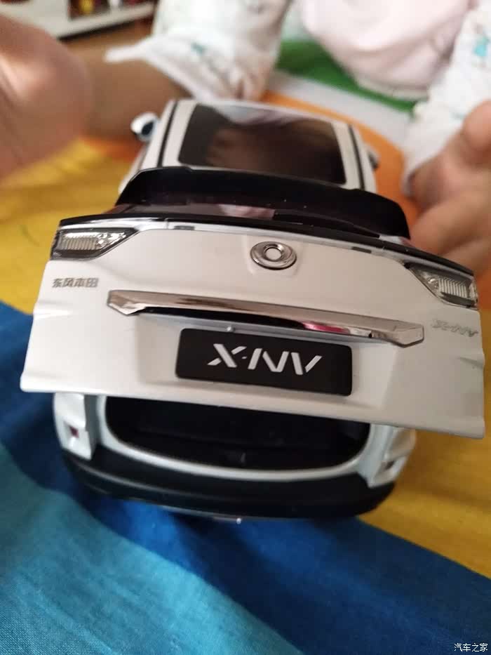 X-NV是基于东风本田XR-V打造而来,这款车模车头悬挂的是东风本田新能源车标,外观原创性较高,前脸造型略微夸张。前格栅两侧依旧是熟悉的开眼角灯,不过可惜的是高配也没有搭载LED全灯组。大灯组下方的包围两侧,采用了四点式转向灯、非常具有辨识度,侧面上看,本田X-NV车顶以及ABC柱都采用了黑色处理,跟白色车身形成鲜明的对比,视觉冲击力非常强,营造出一种独有的科技感和未来感。新车还搭载了双色花瓣形状的轮毂,设计显得调皮灵动,更为运动化。本田X-NV车尾采用贯穿式尾灯造型设计,采用这样的直通式尾灯是新车的一大亮点,具有强烈的识别能力,下方的黑色环绕也突出了了X-NV的运动性这款车模质量不错,细节做得很完善,分量也很重,金属质感很逼真。俗话说“麻雀虽小五脏俱全”,这 是一台结构相对简单的汽车,但越是“简单”在将其模型化时越复杂。如果模型在还原实车极度复杂的内构时可以选择模糊或者忽略,那么机械结构相对没那么“高级”的汽车反而需要更细致的模具设计。