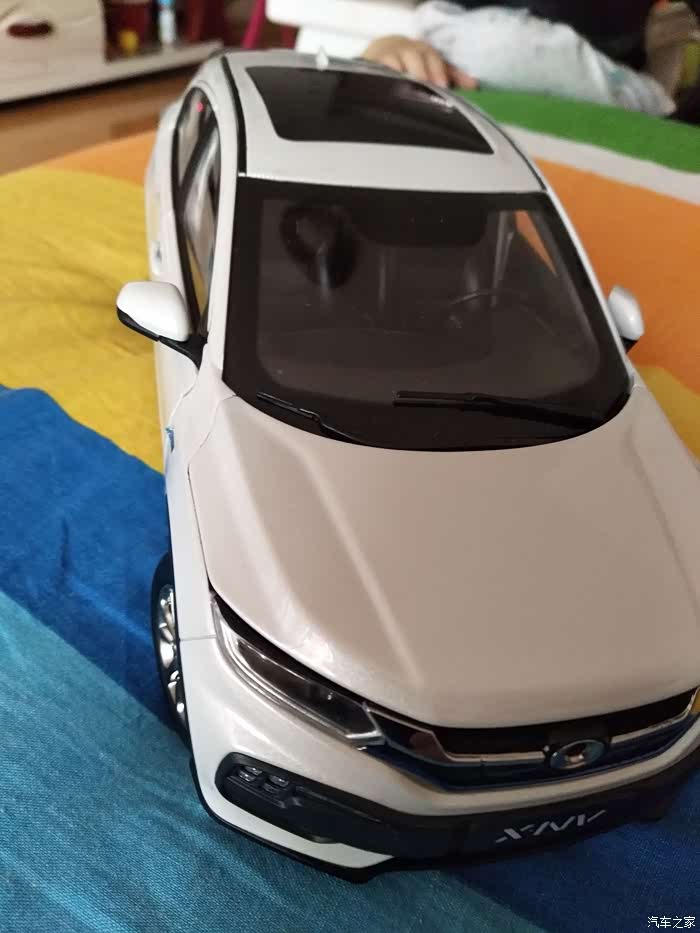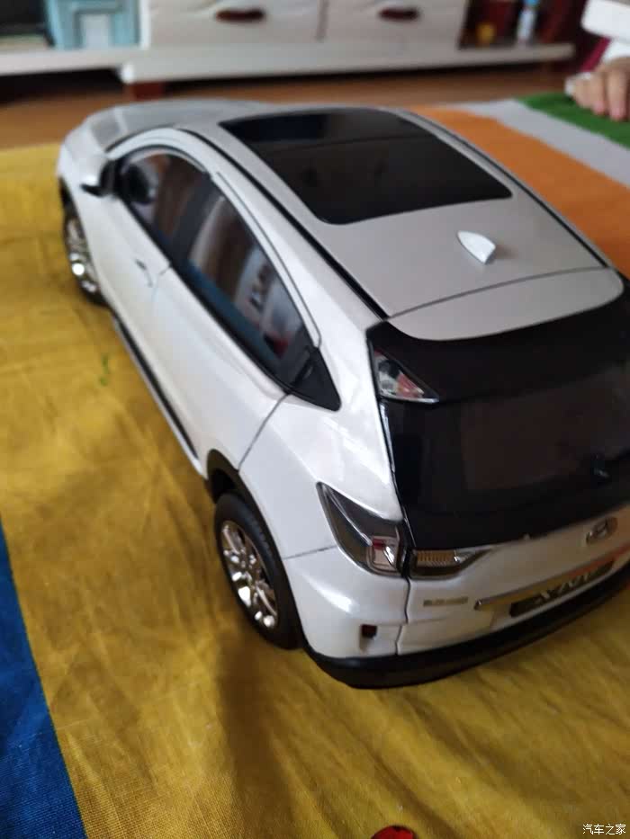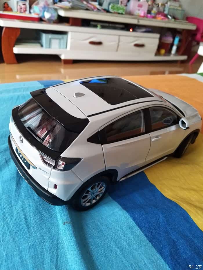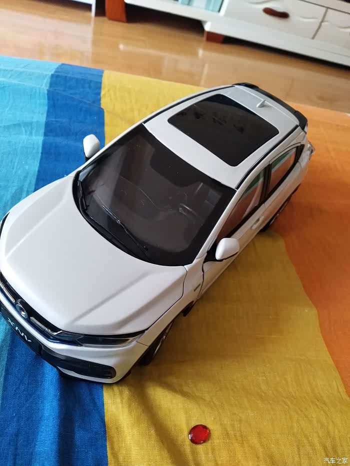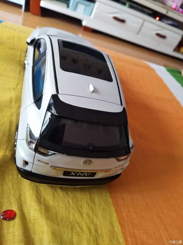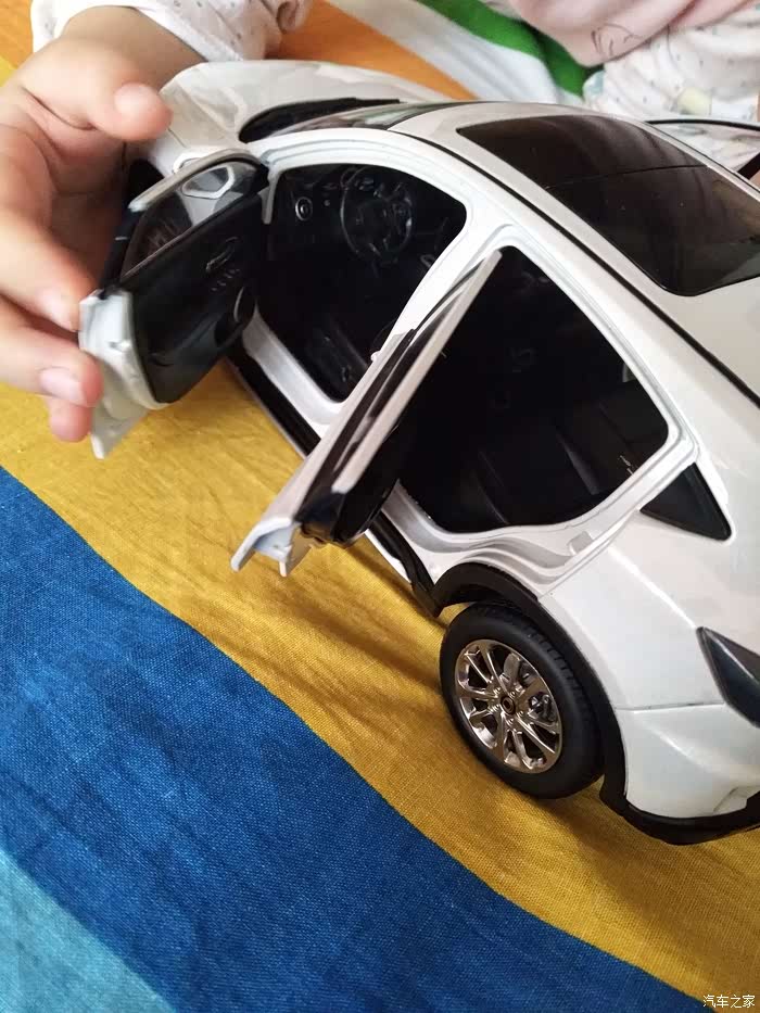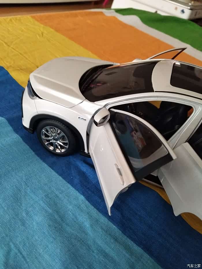 X-NV是基于东风本田XR-V打造而来,这款车模车头悬挂的是东风本田新能源车标,外观原创性较高,前脸造型略微夸张。前格栅两侧依旧是熟悉的开眼角灯,不过可惜的是高配也没有搭载LED全灯组。大灯组下方的包围两侧,采用了四点式转向灯、非常具有辨识度,侧面上看,本田X-NV车顶以及ABC柱都采用了黑色处理,跟白色车身形成鲜明的对比,视觉冲击力非常强,营造出一种独有的科技感和未来感。新车还搭载了双色花瓣形状的轮毂,设计显得调皮灵动,更为运动化。本田X-NV车尾采用贯穿式尾灯造型设计,采用这样的直通式尾灯是新车的一大亮点,具有强烈的识别能力,下方的黑色环绕也突出了了X-NV的运动性这款车模质量不错,细节做得很完善,分量也很重,金属质感很逼真。俗话说“麻雀虽小五脏俱全”,这 是一台结构相对简单的汽车,但越是“简单”在将其模型化时越复杂。如果模型在还原实车极度复杂的内构时可以选择模糊或者忽略,那么机械结构相对没那么“高级”的汽车反而需要更细致的模具设计。