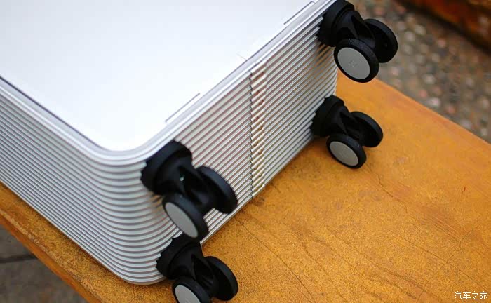 侧面使用了条纹状的处理,不仅更加美观,在部分使用的时候如果需要抬起行李箱,也可以起到防滑的效果。从细节也可以看到,这款途加1号的做工非常精致,而且表面的金属处理的也非常优秀,触感光滑细腻。坚固的金属材质,也让整个行李箱的前盖可以承载100KG重的成人。旅行中想休息?途加1号可以提供一个牢固的依靠。