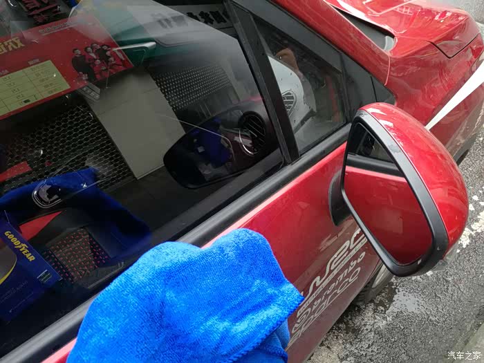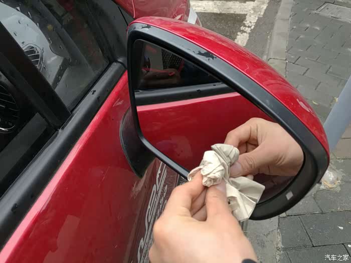 还是先把右侧后视镜擦得干干净净的。准备好。