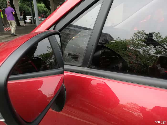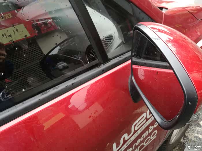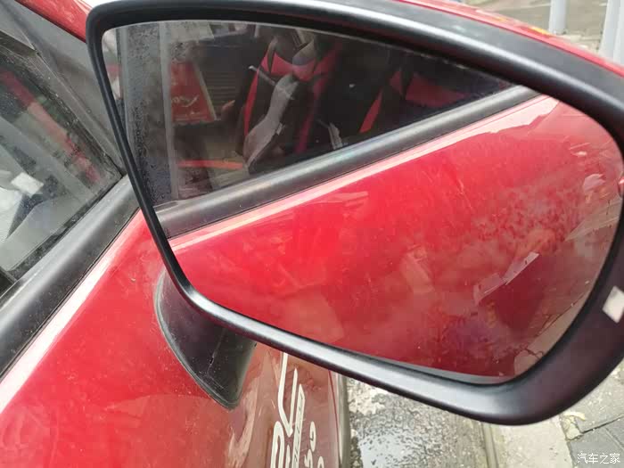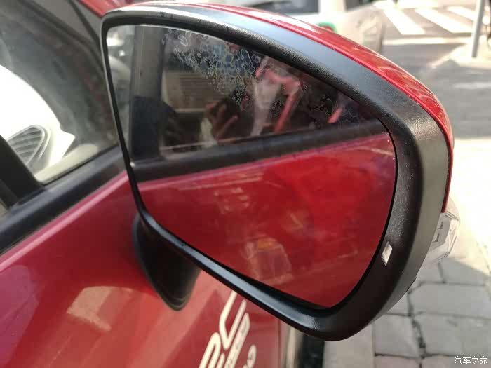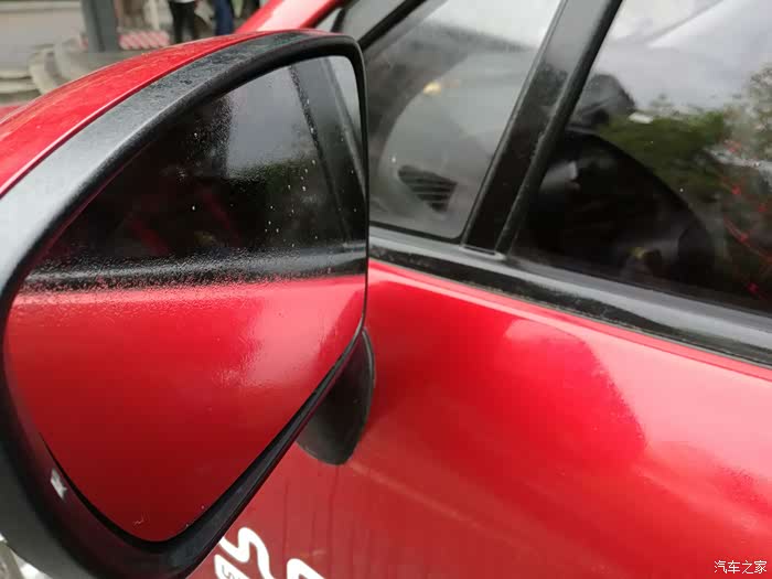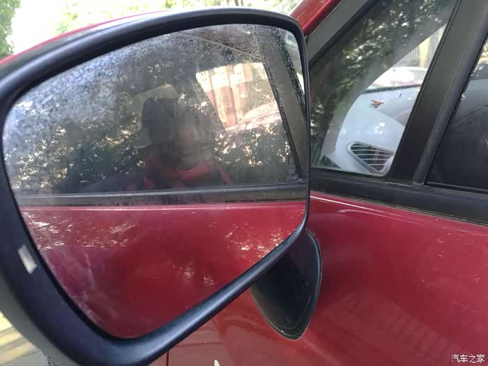 重新再试一试,然后洒水在后视镜上模仿雨天雨滴。然后出现这种情况。很明显的污迹在表面。